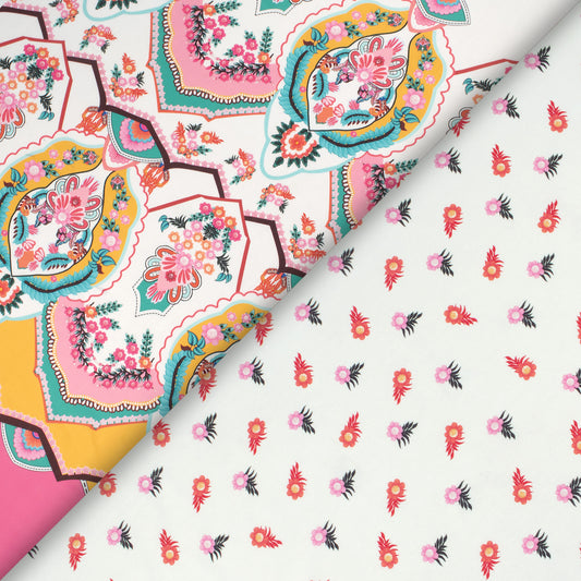 -11% offCreative Digital Print Mulmul Cotton Fabric - Floral, Designer Border Creative Digital Print Mulmul Cotton Fabric - Floral, Designer Border