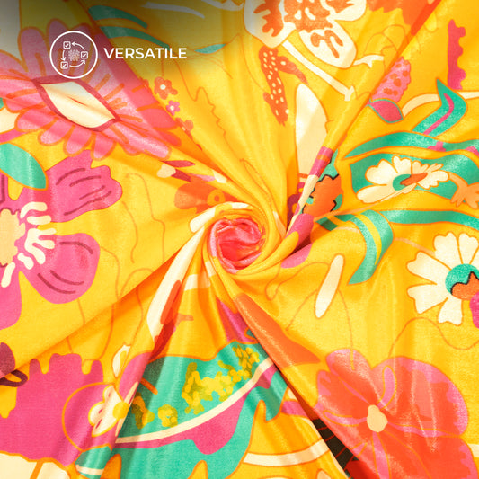 Cyber Yellow Abstract Floral Digital Print Premium Velvet Fabric Cyber Yellow Abstract Floral Digital Print Premium Velvet Fabric