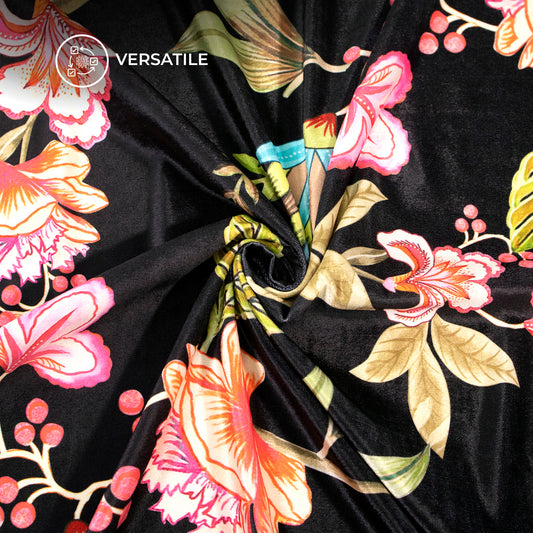 Multi Color Bandhanii Floral Digital Print Premium Velvet Fabric Multi Color Bandhanii Floral Digital Print Premium Velvet Fabric
