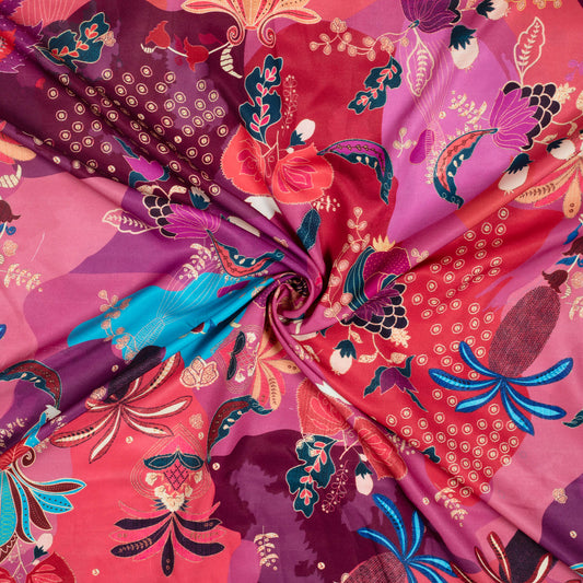 Purple And Red Madhuvanii Pattern Digital Print Ultra Premium Butter Crepe Fabric Purple And Red Madhuvanii Pattern Digital Print Ultra Premium Butter Crepe Fabric