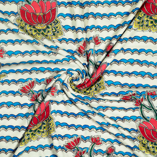 Off White And Red Madhuvanii Pattern Digital Print Ultra Premium Butter Crepe Fabric Off White And Red Madhuvanii Pattern Digital Print Ultra Premium Butter Crepe Fabric
