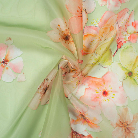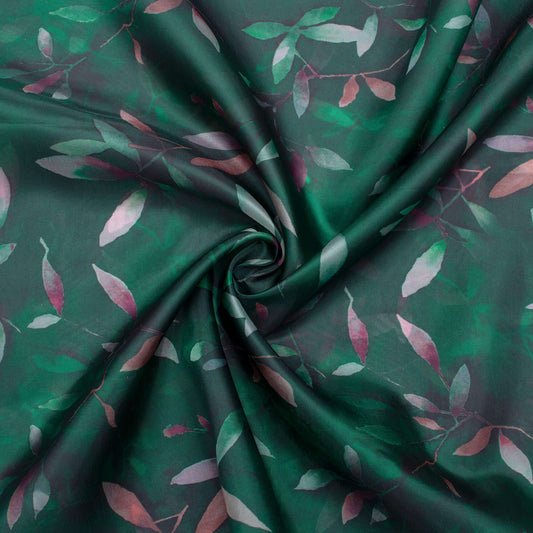 -10% offDark Green And Peach Floral Pattern Digital Print Organza Satin Fabric Dark Green And Peach Floral Pattern Digital Print Organza Satin Fabric