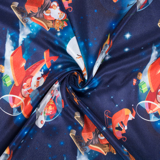 -7% offNavy Blue And Red Christmas Pattern Digital Print Crepe Silk Fabric Navy Blue And Red Christmas Pattern Digital Print Crepe Silk Fabric