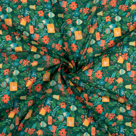-10% offGreen And Honey Yellow Christmas Pattern Digital Print Georgette Fabric Green And Honey Yellow Christmas Pattern Digital Print Georgette Fabric