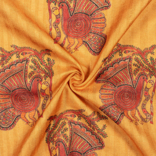 Fleaxen Yellow And Orange Madhuvanii Pattern Digital Print Art Tusser Silk Fabric Fleaxen Yellow And Orange Madhuvanii Pattern Digital Print Art Tusser Silk Fabric