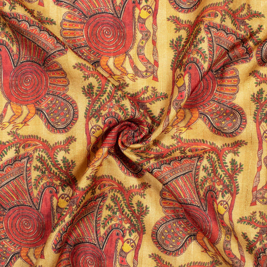 -9% offCopper Beige And Red Madhuvanii Pattern Digital Print Art Tusser Silk Fabric Copper Beige And Red Madhuvanii Pattern Digital Print Art Tusser Silk Fabric