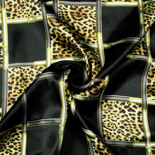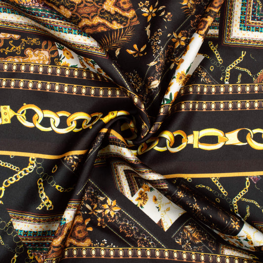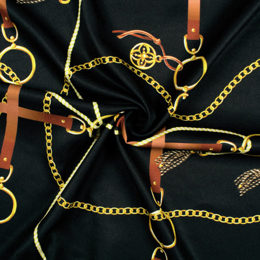 -30% offBlack And Brown Chain Pattern Digital Print Japan Satin Fabric Black And Brown Chain Pattern Digital Print Japan Satin Fabric