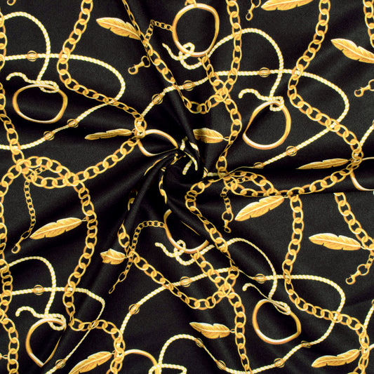 -20% offBlack And Dijon Yellow Chain Pattern Digital Print American Crepe Fabric Black And Dijon Yellow Chain Pattern Digital Print American Crepe Fabric