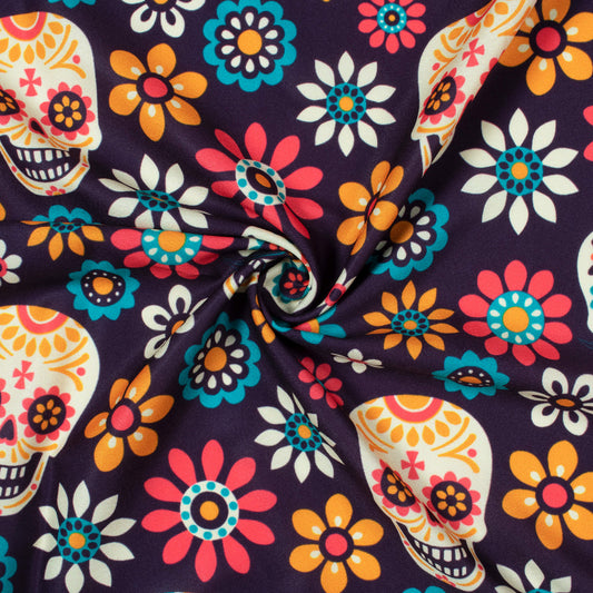 -20% offPrussian Blue And White Halloween Pattern Digital Print American Crepe Fabric Prussian Blue And White Halloween Pattern Digital Print American Crepe Fabric