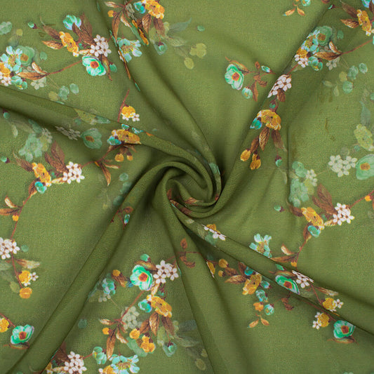 -10% offOlive Green And Beige Floral Pattern Digital Print Georgette Fabric Olive Green And Beige Floral Pattern Digital Print Georgette Fabric