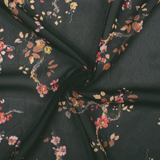 -10% offBlack And Brown Floral Pattern Digital Print Georgette Fabric Black And Brown Floral Pattern Digital Print Georgette Fabric
