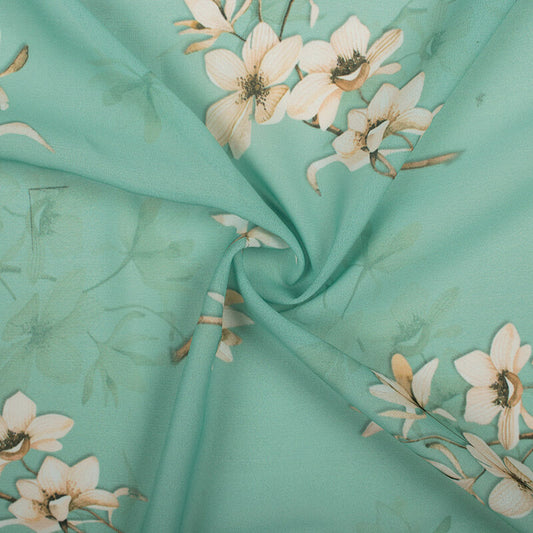 -10% offMint Green And White Floral Pattern Digital Print Georgette Fabric Mint Green And White Floral Pattern Digital Print Georgette Fabric