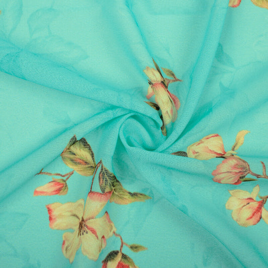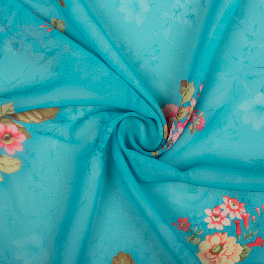 -10% offTurquoise Blue And Pink Floral Pattern Digital Print Georgette Fabric Turquoise Blue And Pink Floral Pattern Digital Print Georgette Fabric