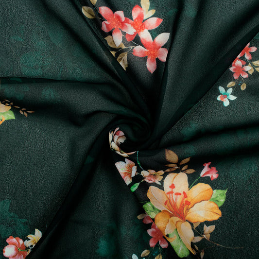 -10% offDark Green And Pink Floral Pattern Digital Print Georgette Fabric Dark Green And Pink Floral Pattern Digital Print Georgette Fabric