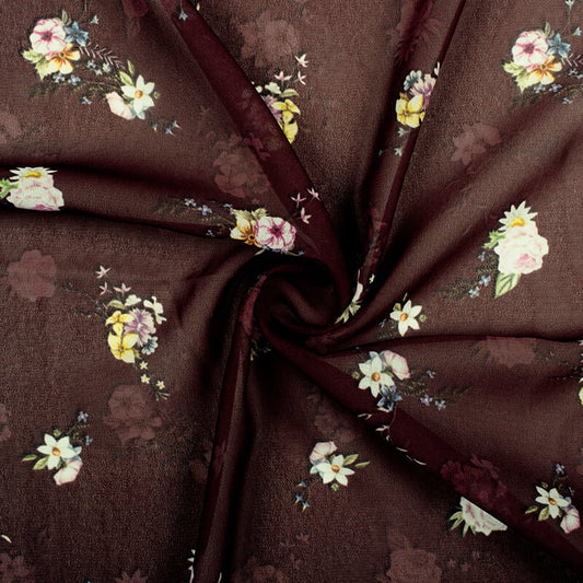 -10% offCoffee Brown And Rose Pink Floral Pattern Digital Print Georgette Fabric Coffee Brown And Rose Pink Floral Pattern Digital Print Georgette Fabric