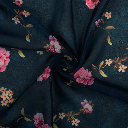 -10% offPrussian Blue And Pink Floral Pattern Digital Print Georgette Fabric Prussian Blue And Pink Floral Pattern Digital Print Georgette Fabric