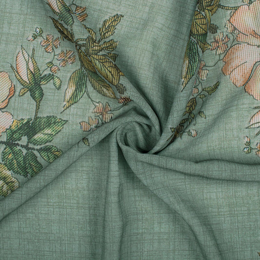 -10% offCelaste Green And light Orange Floral Pattern Digital Print Georgette Fabric Celaste Green And light Orange Floral Pattern Digital Print Georgette Fabric