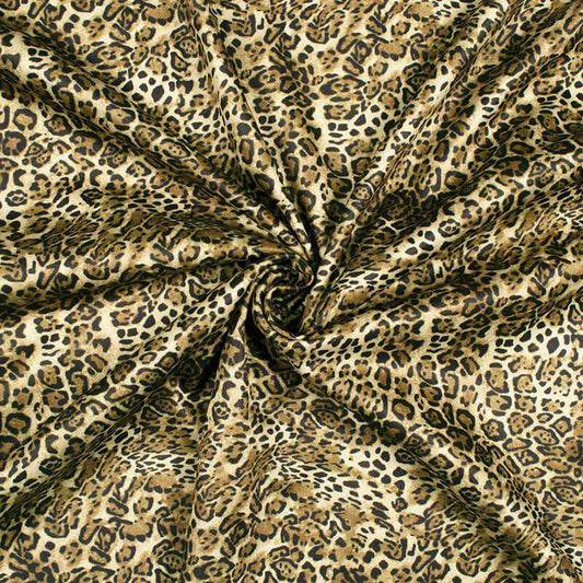 Peanut Brown And Black Leapord Animal Pattern Digital Print Lycra Fabric (Width 56 Inches) Peanut Brown And Black Leapord Animal Pattern Digital Print Lycra Fabric (Width 56 Inches)