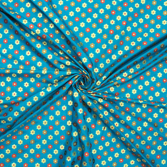 -20% offSky Blue And Orange Floral Pattern Zari Jacquard Banarasi Taffeta Silk Fabric Sky Blue And Orange Floral Pattern Zari Jacquard Banarasi Taffeta Silk Fabric