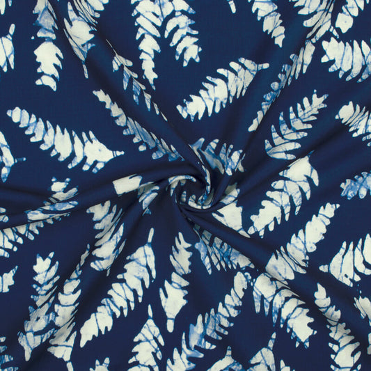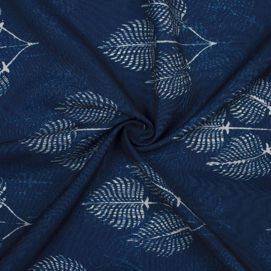-10% offNavy Blue And White Leaf Pattern Digital Printed Muslin Fabric Navy Blue And White Leaf Pattern Digital Printed Muslin Fabric