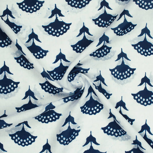 -10% offWhite And Navy Blue Floral Pattern Digital Printed Muslin Fabric White And Navy Blue Floral Pattern Digital Printed Muslin Fabric