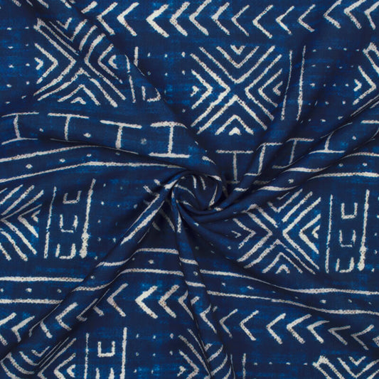 -10% offNavy Blue And White Geometric Pattern Digital Printed Muslin Fabric Navy Blue And White Geometric Pattern Digital Printed Muslin Fabric