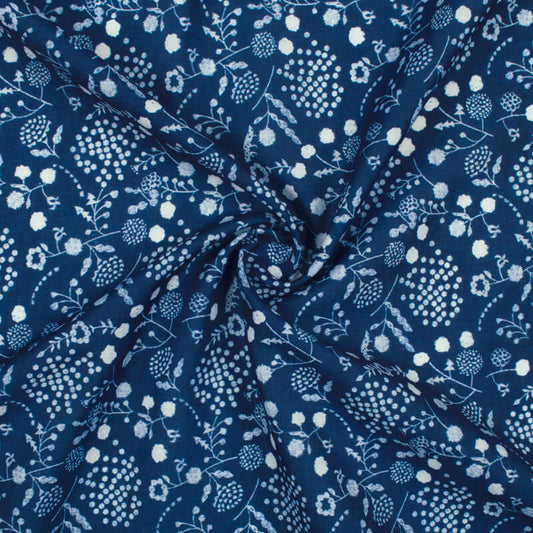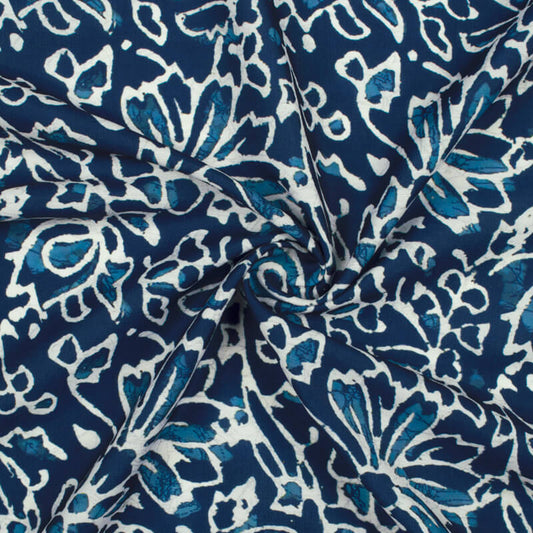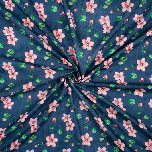 -10% offNavy Blue And White Floral Pattern Digital Printed Muslin Fabric Navy Blue And White Floral Pattern Digital Printed Muslin Fabric