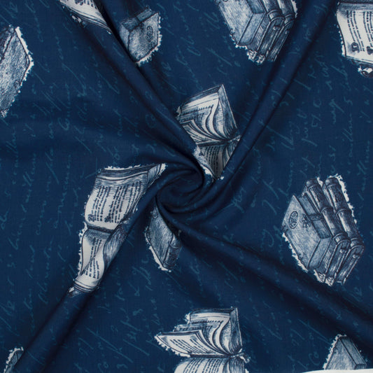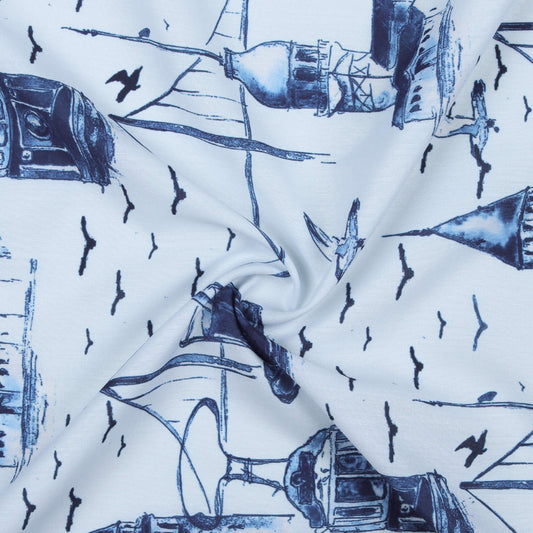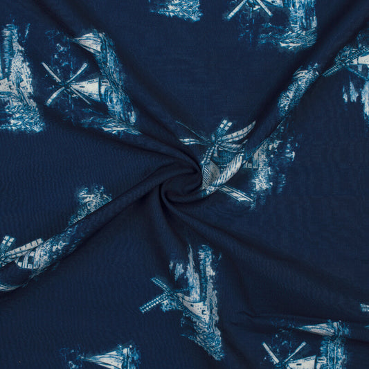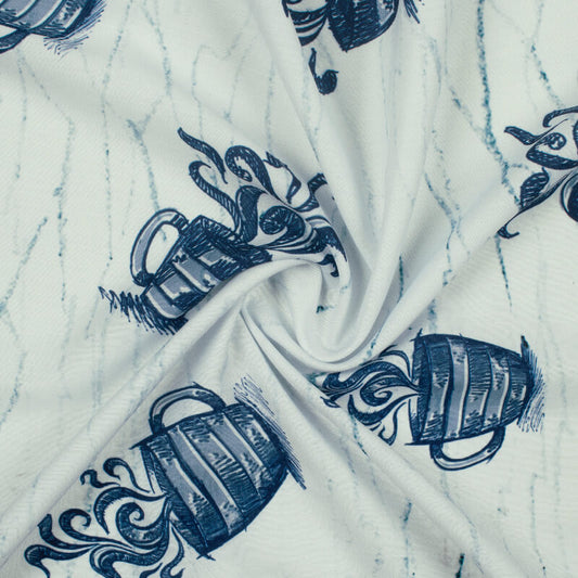 -10% offNavy Blue And White Quirky Pattern Digital Printed Muslin Fabric Navy Blue And White Quirky Pattern Digital Printed Muslin Fabric