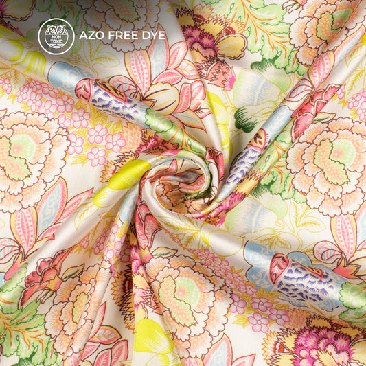 Multicolor Floral Digital Print Japan Satin Fabric Multicolor Floral Digital Print Japan Satin Fabric