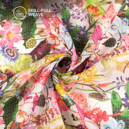 Trendy Multicolor Floral Digital Print Kota Doria Fabric Trendy Multicolor Floral Digital Print Kota Doria Fabric