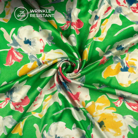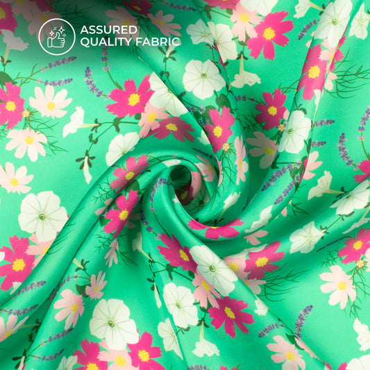 Green Seamless Floral Digital Print Georgette Satin Fabric Green Seamless Floral Digital Print Georgette Satin Fabric