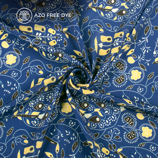 Navy Blue Abstract Floral Digital Print Japan Satin Fabric Navy Blue Abstract Floral Digital Print Japan Satin Fabric
