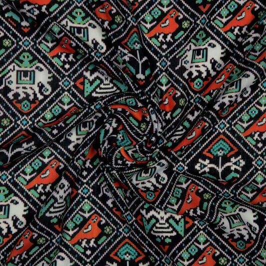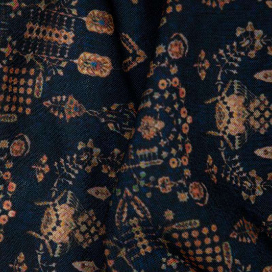 Navy Blue Ethnic Digital Print Rayon Fabric