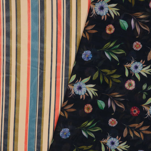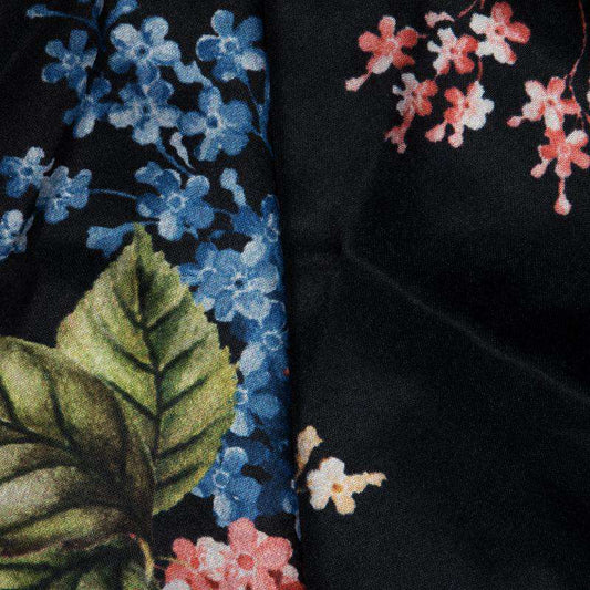 -10% offNavy Blue Floral Digital Print Organza Satin Fabric Navy Blue Floral Digital Print Organza Satin Fabric