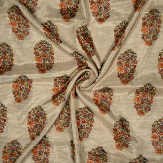 Beige Mugal Floral Pattern Digital Print Viscose Muslin Fabric Beige Mugal Floral Pattern Digital Print Viscose Muslin Fabric