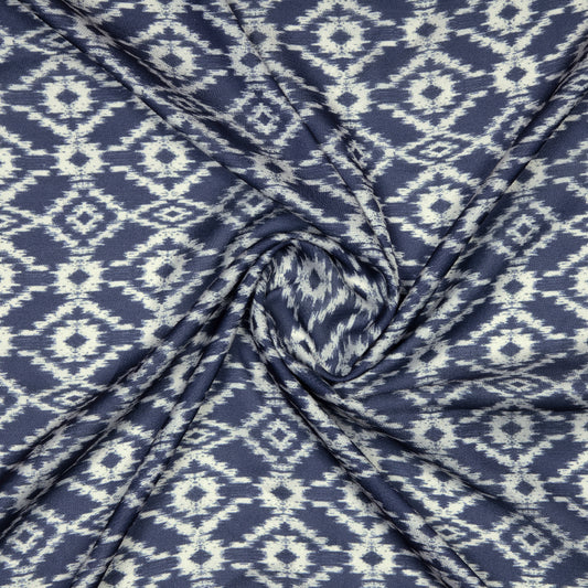 -30% offNavy Blue And White Ikkat Pattern Digital Print Modal Satin Fabric Navy Blue And White Ikkat Pattern Digital Print Modal Satin Fabric