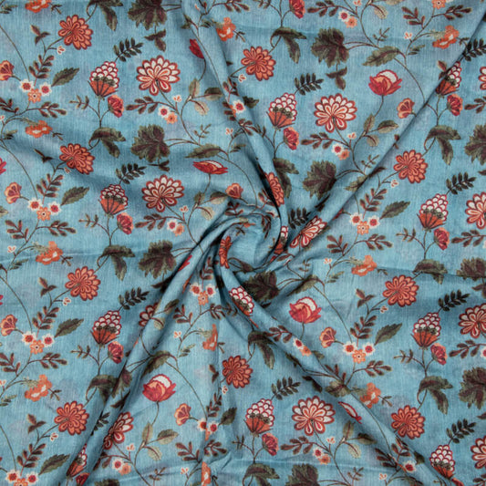-9% offLight Blue Floral Pattern Digital Print Viscose Muslin Fabric Light Blue Floral Pattern Digital Print Viscose Muslin Fabric