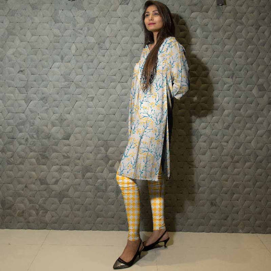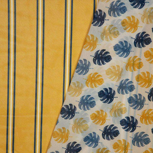 -10% offWhite And Yellow Leaf Pattern Digital Print Muslin Fabric White And Yellow Leaf Pattern Digital Print Muslin Fabric