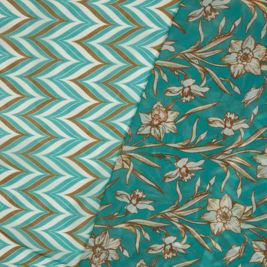 -20% offTeal And White Chevron Pattern Digital Print American Crepe Fabric Teal And White Chevron Pattern Digital Print American Crepe Fabric