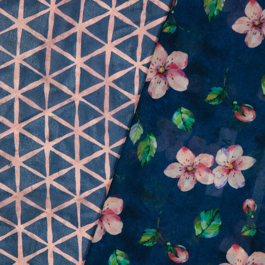 -20% offBlue And Pink Geometric Pattern Digital Print American Crepe Fabric Blue And Pink Geometric Pattern Digital Print American Crepe Fabric