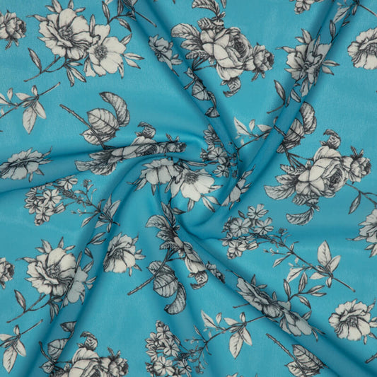 -20% offSky Blue And White Floral Pattern Digital Print American Crepe Fabric Sky Blue And White Floral Pattern Digital Print American Crepe Fabric
