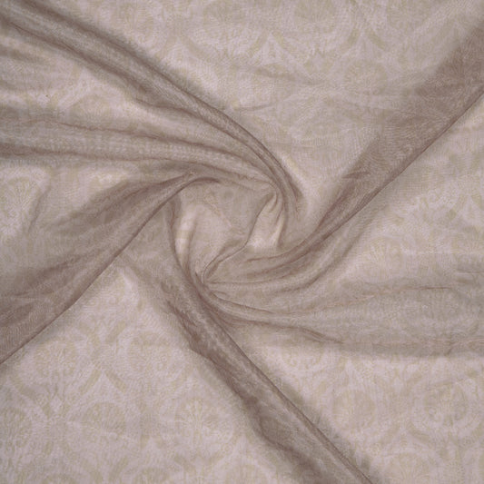Beige Floral Chevron Digital Print Organza Satin Fabric Beige Floral Chevron Digital Print Organza Satin Fabric