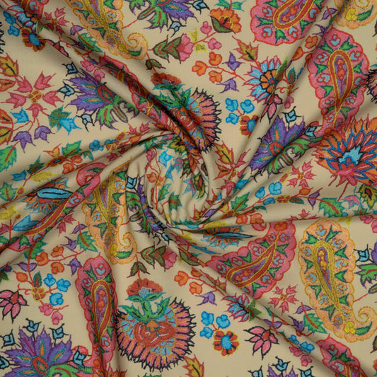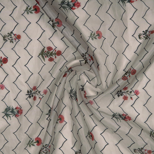 White Mugal Floral Digital Print Organza Satin Fabric White Mugal Floral Digital Print Organza Satin Fabric