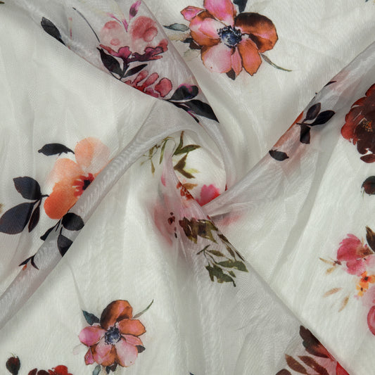 -10% offOff White Floral Digital Print Organza Satin Fabric Off White Floral Digital Print Organza Satin Fabric