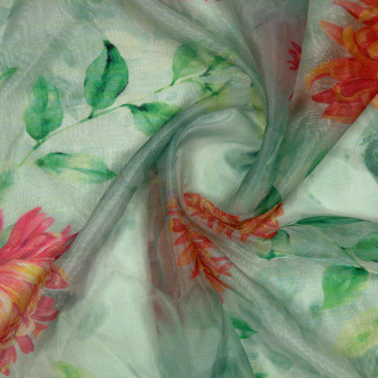 -10% offMulticolor Floral Digital Print Organza Satin Fabric Multicolor Floral Digital Print Organza Satin Fabric