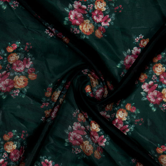 -10% offBottle Green Floral Digital Print Organza Satin Fabric Bottle Green Floral Digital Print Organza Satin Fabric