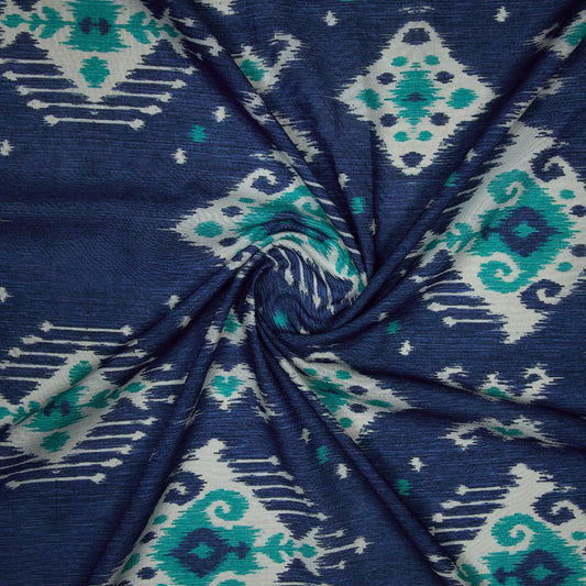 Turquoise Ethnic Digital Print Organza Satin Fabric Turquoise Ethnic Digital Print Organza Satin Fabric
