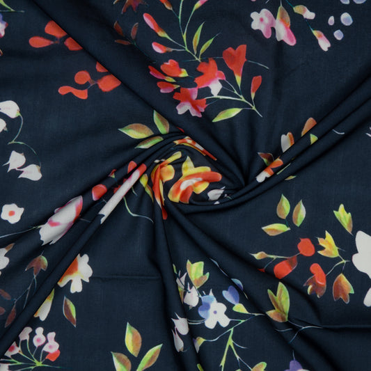 -10% offNavy Blue Floral Digital Print Organza Satin Fabric Navy Blue Floral Digital Print Organza Satin Fabric