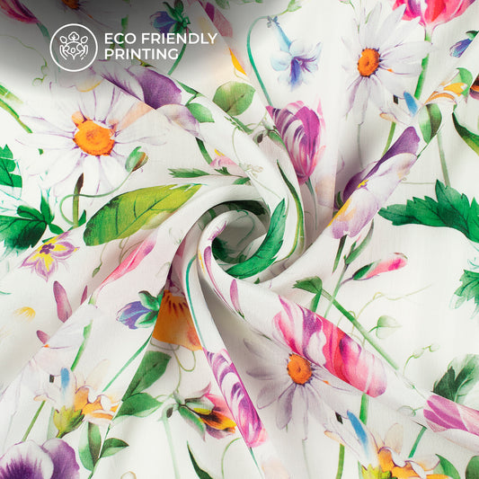 Blooming Beauty: Pretty Floral Digital Print Viscose Natural Crepe Fabric Blooming Beauty: Pretty Floral Digital Print Viscose Natural Crepe Fabric