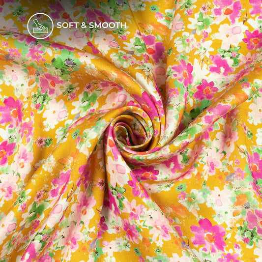 Floral Finesse: Digital Print Imported Satin Fabric Floral Finesse: Digital Print Imported Satin Fabric